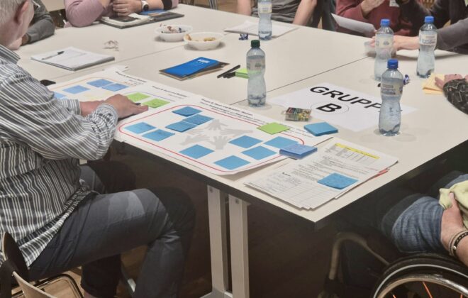 Um Personen zu erreichen, die also per Definition schwer erreichbar sind (einsame Personen, von Ausschluss betroffene Personen, Personen mit wenig Teilhabemöglichkeiten oder marginalisierte Personen), setzten wir einerseits auf die Zusammenarbeit mit Schlüsselpersonen, welche aufgrund ihrer Tätigkeit bereits mit entsprechenden Personengruppen in Kontakt stehen und anderseits auf das Format der «dezentralen Gesprächsrunden». Auf die klassische, zentral durchgeführte grössere Veranstaltung wurde bewusst verzichtet. An ihrer Stelle wurden verschiedene kleinere Gesprächsrunden mit jeweils 6 bis 7 Teilnehmenden durchgeführt, welche von den Schlüsselpersonen moderiert wurden. Diese Gesprächsrunden fanden je nach Bedürfnis der Teilnehmenden in ihrer Nähe und an ihnen bereits bekannten Orten statt (z.B. in der Alterswohnsiedlung).